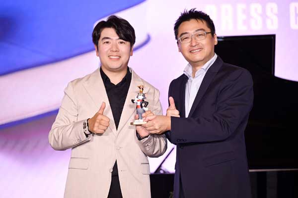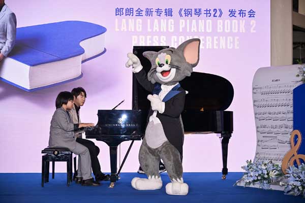 环球音乐大中华区主席暨首席执行官徐毅为郎朗呈上一份精心准备的礼物——猫和老鼠的桌面铜摆件,接过礼物的郎朗惊喜表示“当年五岁的时候看了这部动画片就哭着喊着要买汤姆身上的燕尾服”。介绍选择这份礼物的意义时,徐毅表示:“作为郎朗的音乐启蒙之一,《猫和老鼠》代表了郎朗在钢琴家这个身份之外的另一重使命,那就是推广音乐教育。《钢琴书》这个产品系列正是郎朗出于这样的使命驱动,送给所有钢琴学习者的一份礼物。正如当年汤姆启发了郎朗对钢琴的热爱,我相信‘钢琴书’这套作品也会继续传递这份热爱。期待《钢琴书2》再续成功,成为新的经典佳篇。也祝愿每一个心中有音乐梦想的人都能被燃亮,无论是通过动画人物,还是钢琴大师。”